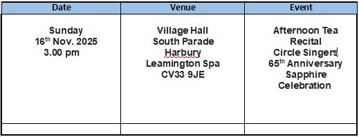 The Circle Singers which is based in Royal Leamington Spa has now been singing for over 60 years, giving regular performances in aid of charitable causes in and around Leamington Spa.